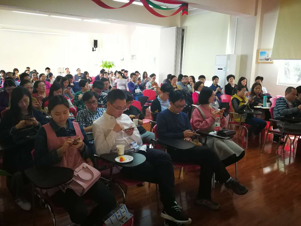 值得表扬的是,很多准爸爸都是陪着准妈妈一起来听讲座的,体贴的帮准妈妈们拿包拿水完成签到领取礼品,孕期心情愉快的妈妈会为宝宝的发育创造一个良好的孕育环境,所以,各位准爸爸要努力让准妈妈开心哦!