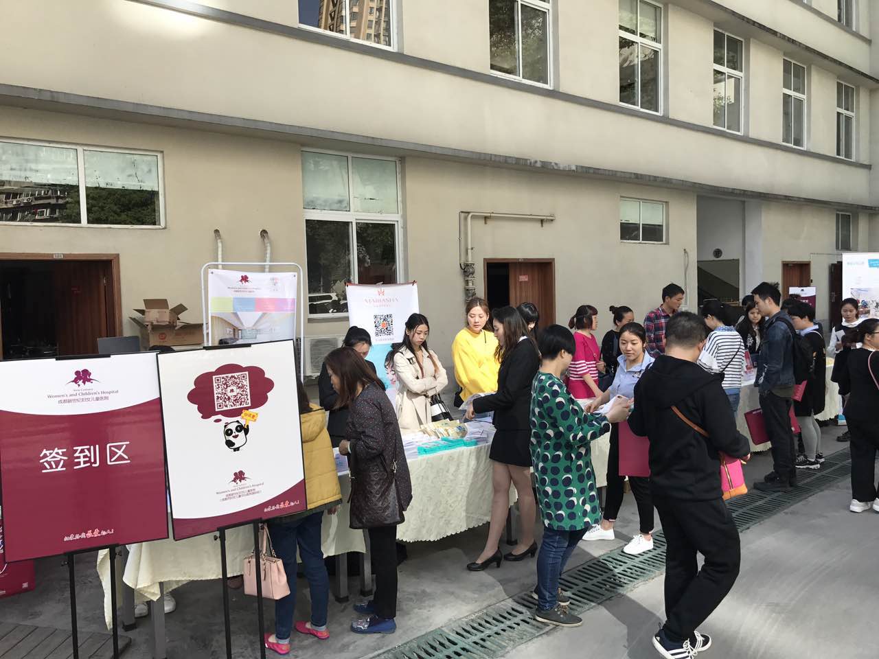 可能是因为天气特别好的原因吧,离讲座开始的时间还早,很多孕妈妈就来到了我们医院,一边在院内晒着太阳散步一边等讲座开始。