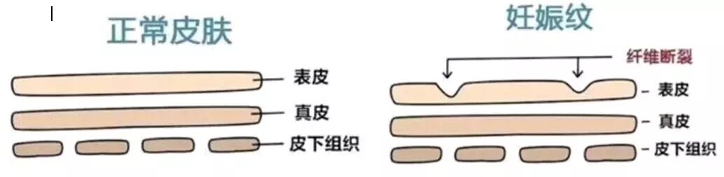 人体在怀孕、体重骤增过程当中产生的皮肤纤维断裂现象,也就是皮肤的扩展速度赶不上发胖长肉的速度,被突然多出来的肉肉给撑开了,呈红色、白色或紫色条纹,外观似瘢痕。