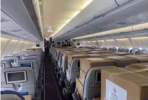 在远方,一架从内罗毕飞往广州的飞机上,没有一位旅客,飞机上满是肯尼亚华人捐赠的物资。