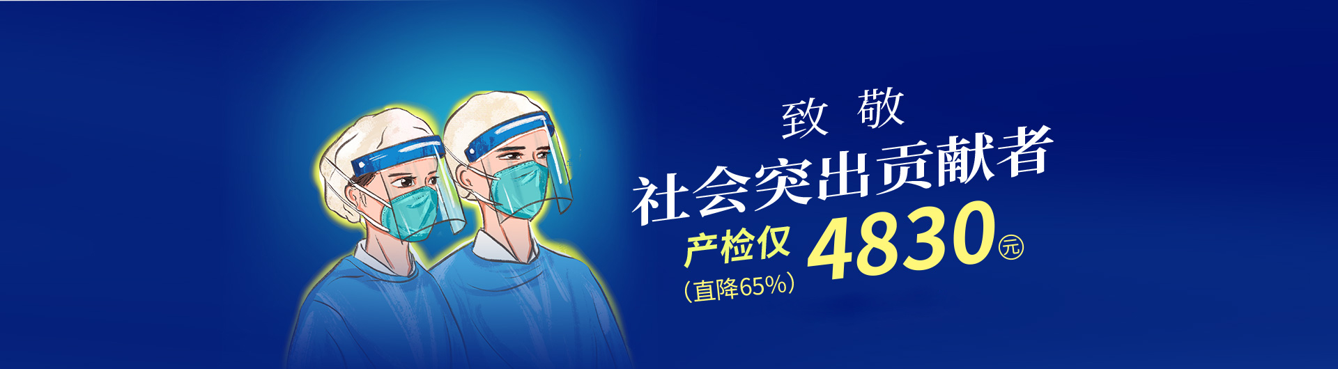 只要您是医务、干警、部队在役、物业公司、社区工作、航运(高铁、飞机)工作者本人或直系亲属,即日起至疫情结束,凭有效证件(工作证、身份证、结婚证)均可享受产检4830元(直降65%)的公益活动价!如果您正在备孕又符合条件,也可提前预购!