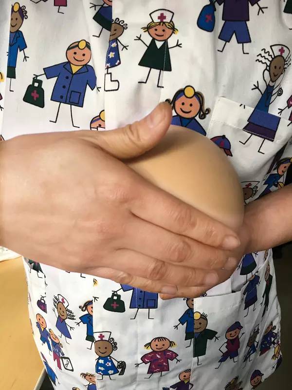 将拇指同其他四指分开,握住乳房,手指稍用力按压乳房,顺着乳房生长的方向从根部向顶部轻推,将乳房的各个方向都做一遍,发现有硬块或肿块时速度放慢。如果发现肿块明显且有痛感,及时就诊。